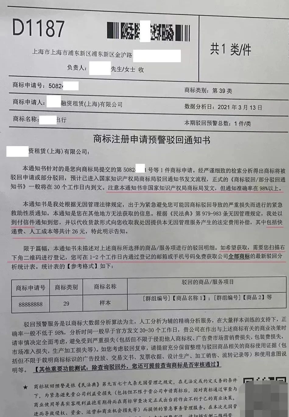 准确率98%以上?新型骗局“商标注册申请预警驳回通知书”来了